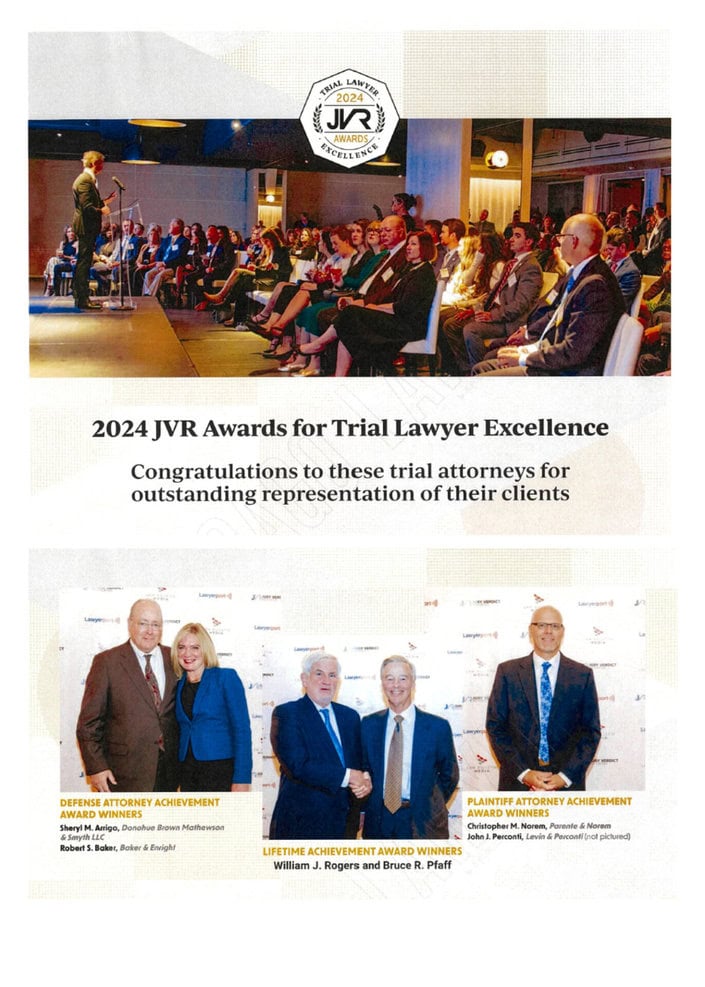 Christopher M. Norem Awarded JVR Plaintiff Attorney Achievement Award The Law Offices of Parente & Norem, P.C. would like to congratulate Christopher M. Norem on being awarded the JVR Plaintiff Attorney Achievement Award at the JVR Awards on Octo... Read More > October 23, 2024